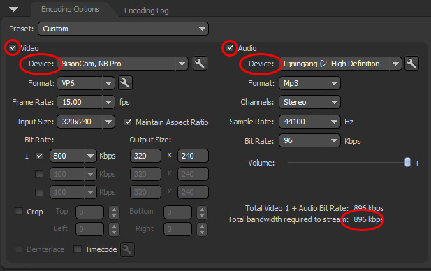 Zet bij device uw video en audio-bron. (dit kan een webcam of andere input zijn)